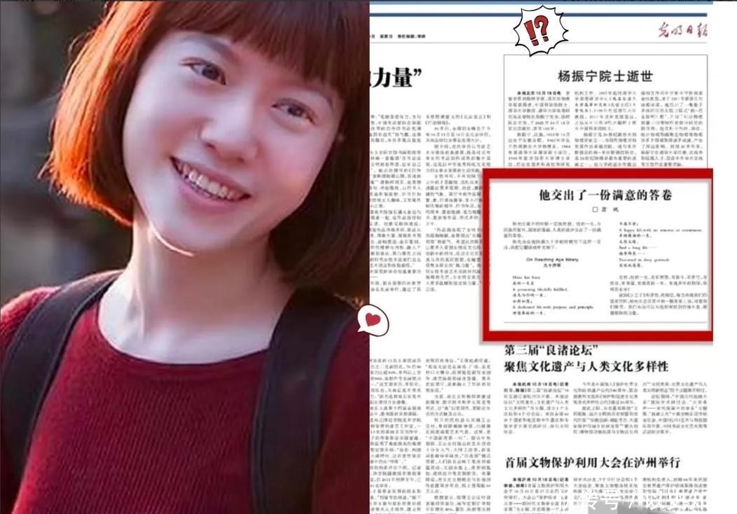 她写道:“杨先生离开的时候一定很欣慰,他的一生,为民族的复兴,国家的强盛,人类的进步交出了一份满意的答卷。”